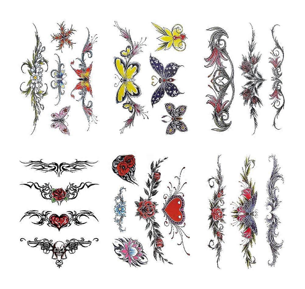 6 pcs,Flowers Butterfly Body Waist Waterproof Fake Temporary Tattoo Stickers Woman