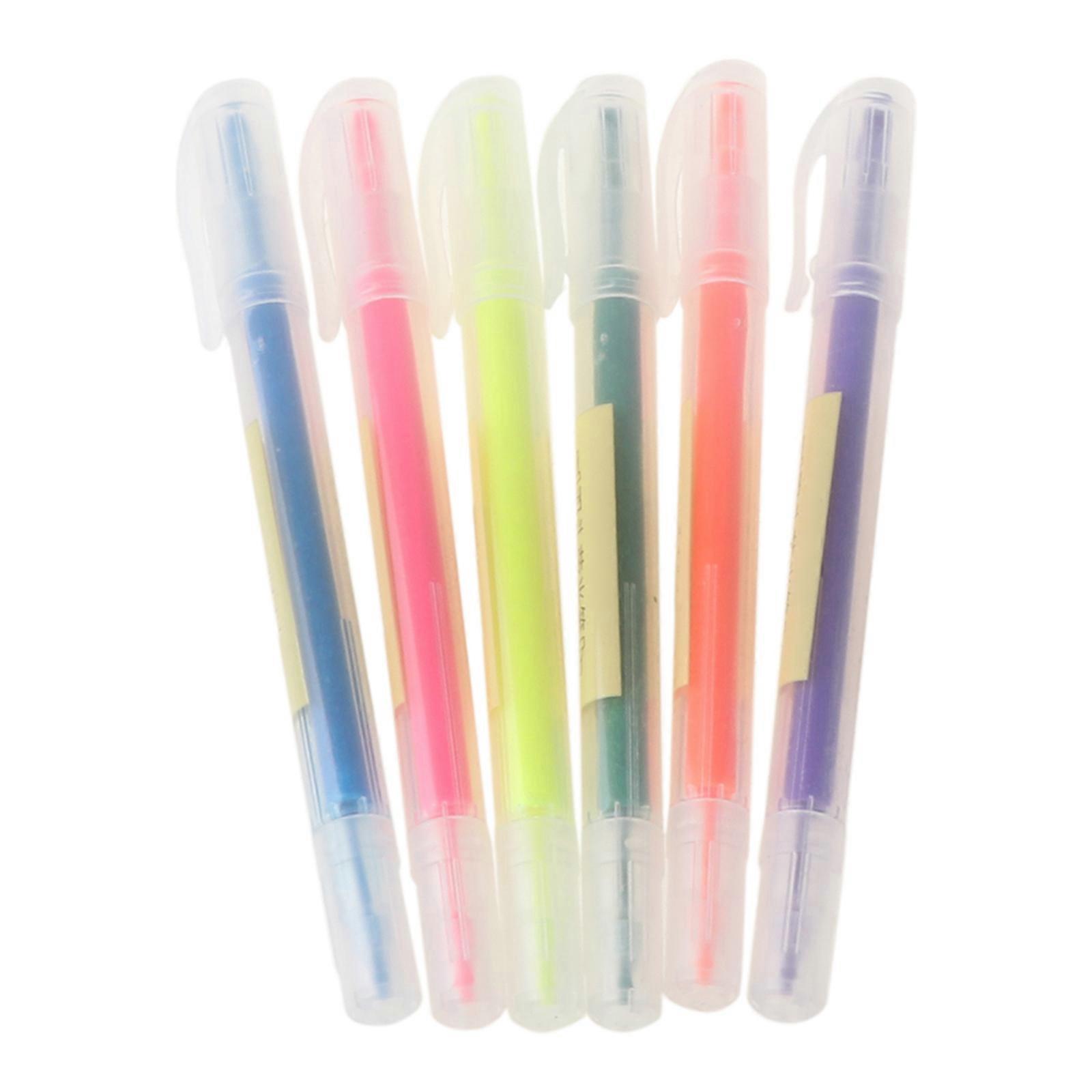 6 Pcs Watercolor Gel Pen Cute Highlighter Solid Accent Ink Maker Smooth Writing Mixed Color