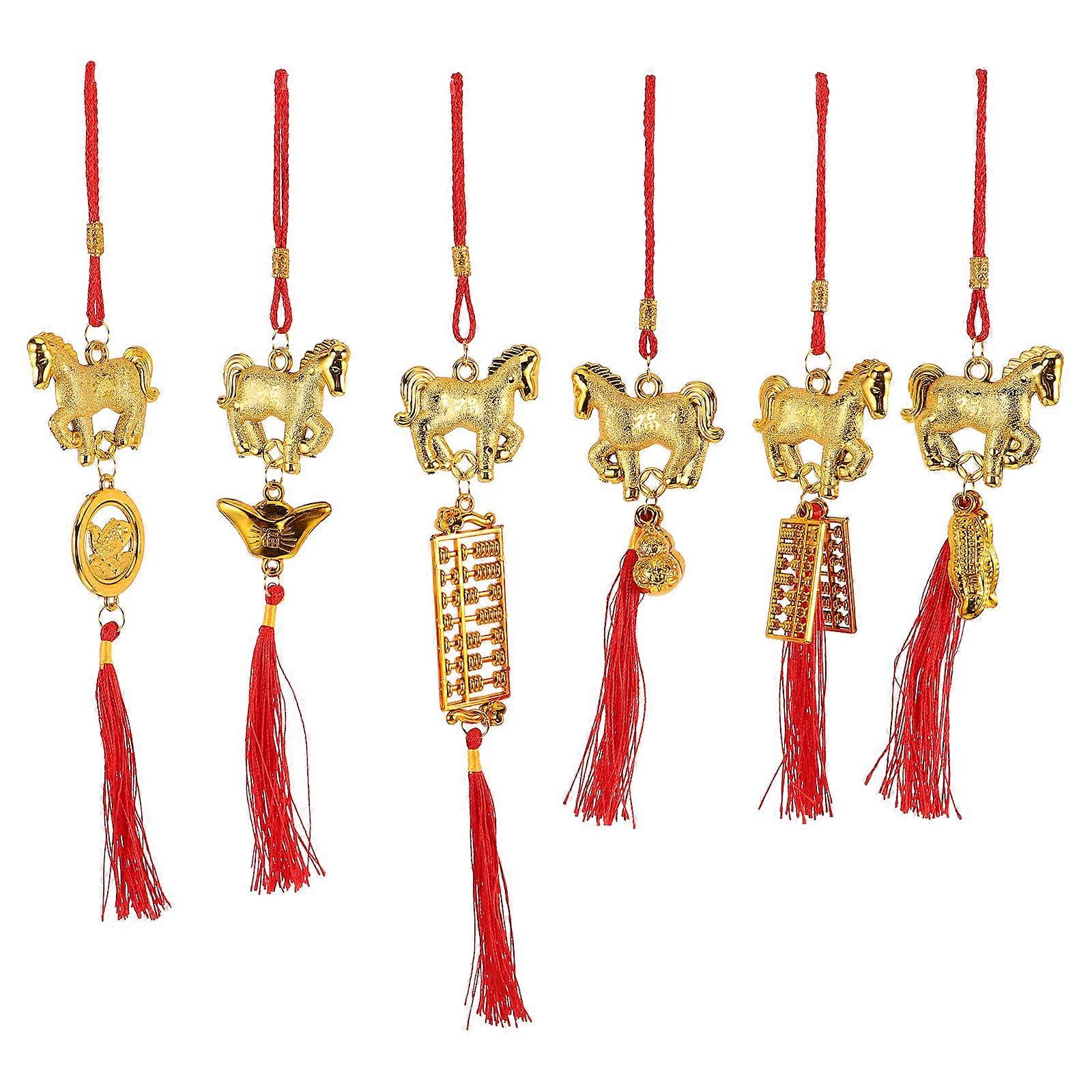6pcs Elegant Horse Year Charms, Intricate Red Tassel Pendants for Home Office Spring Festival Decorations Celebratory Hanging Ornaments