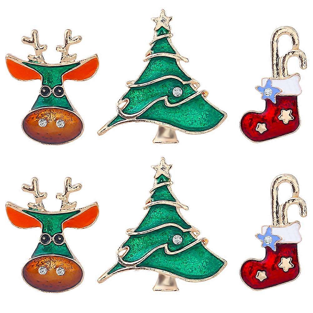 6pcs Christmas Reindeer Brooch Festive Pin Holiday Attire Decoration Vibrant Creative Xmas Decorative Accessories Quality Artificial Jewelry Long