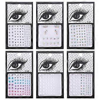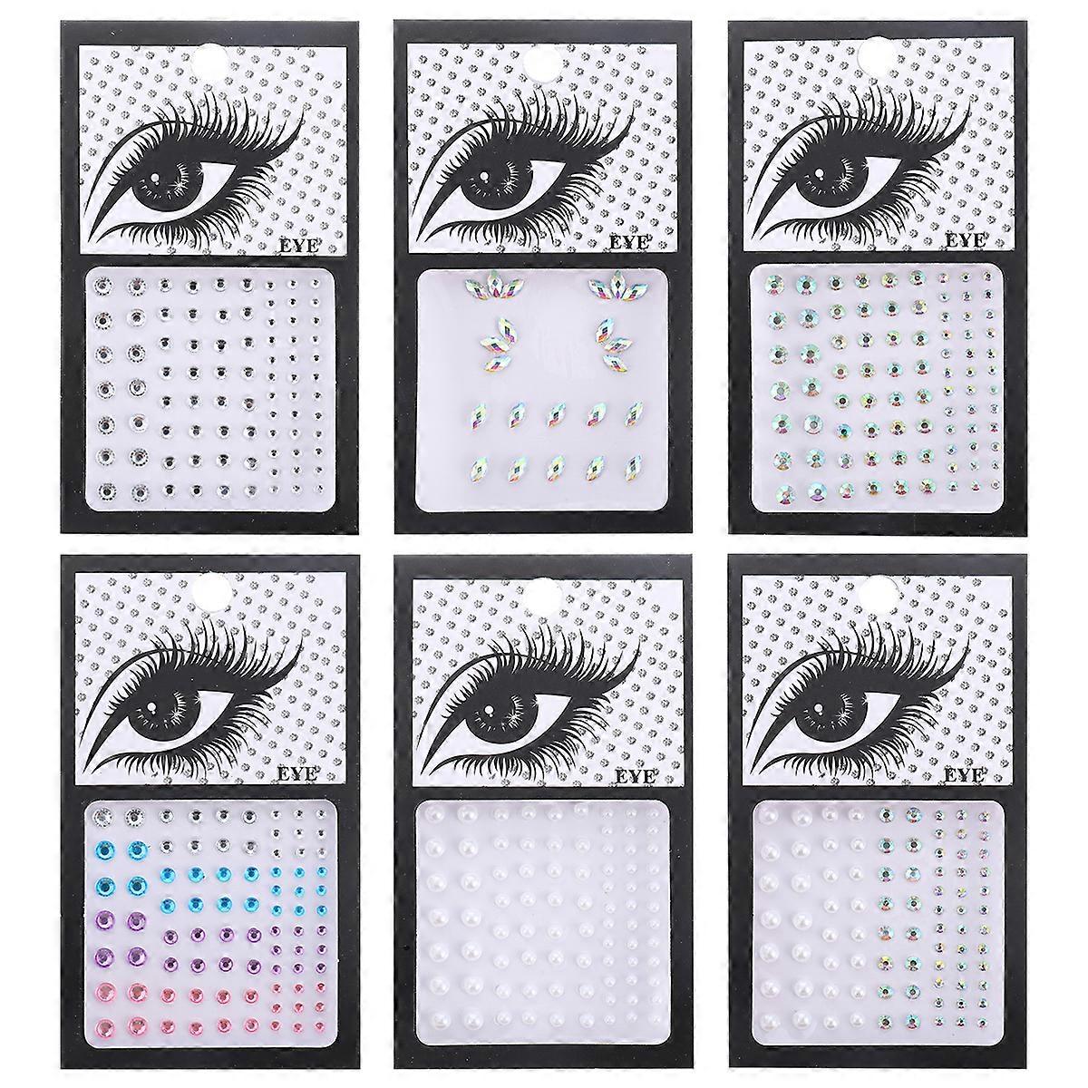 6 Sheets Rhinestone Stickers Eyes Face Body Jewels Stickers Rainbow Face Crystals Halloween Party Supplies