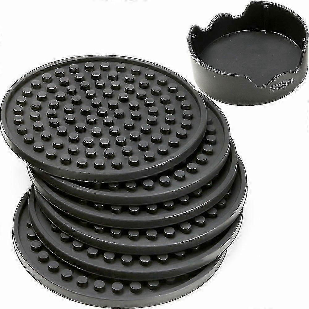 6 Black Drink Coasters with Holder - Protect Furniture from Water Marks & Damage