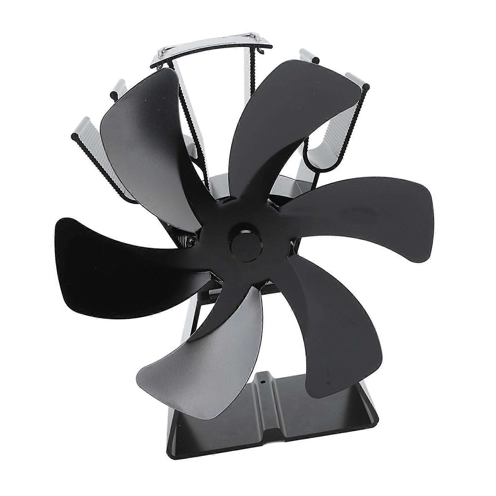 6 Blade Heat Powered Stove Fan Aluminum Alloy Manual Control Desktop Fireplace Fan for Wood Burning Stoves Pellet Log Burners Black