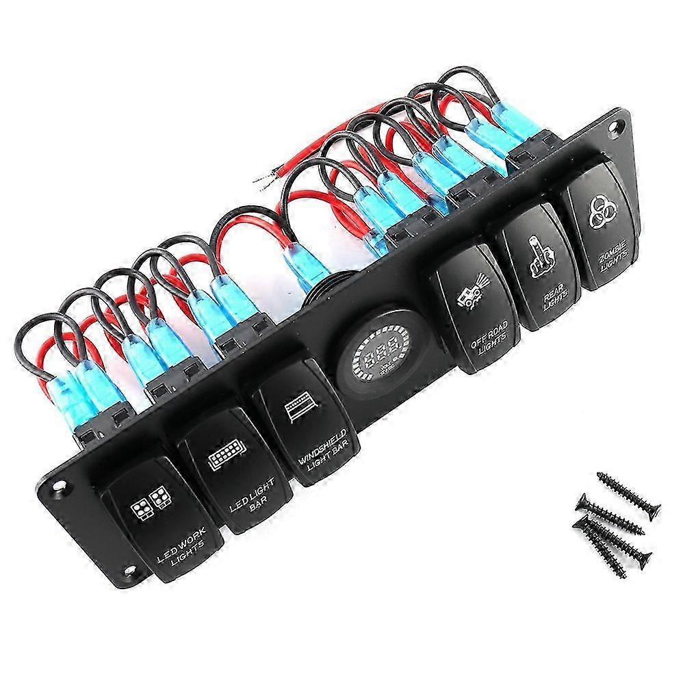 6 Gang Toggle Rocker Switch Panel Colorful LED Voltmeter for RV Car Marine Boat