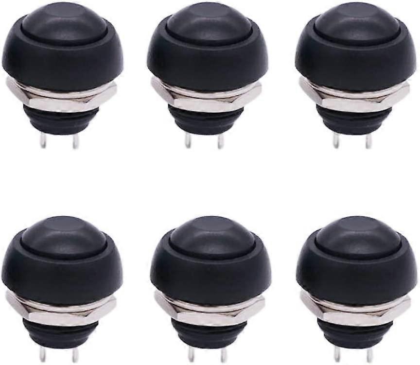 6 Pcs Mini Round Waterproof Momentary Push Button Switch Black 12mm 1/2" Mounting Hole On Off PBS-33B-BK