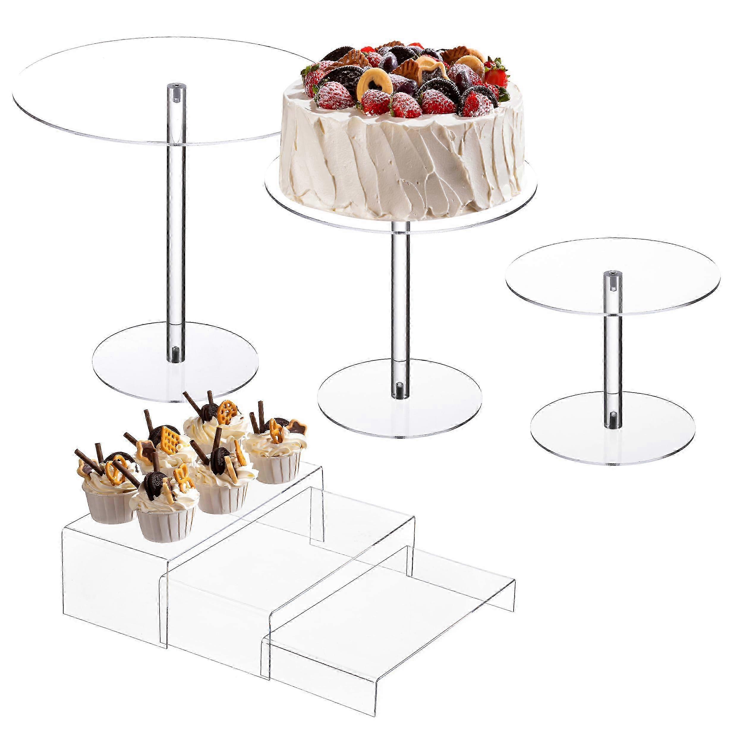 6 Pcs Clear Acrylic Cupcake and Dessert Table Display Stand Set for Wedding 3 Tiered Tower and Pedestal Stands