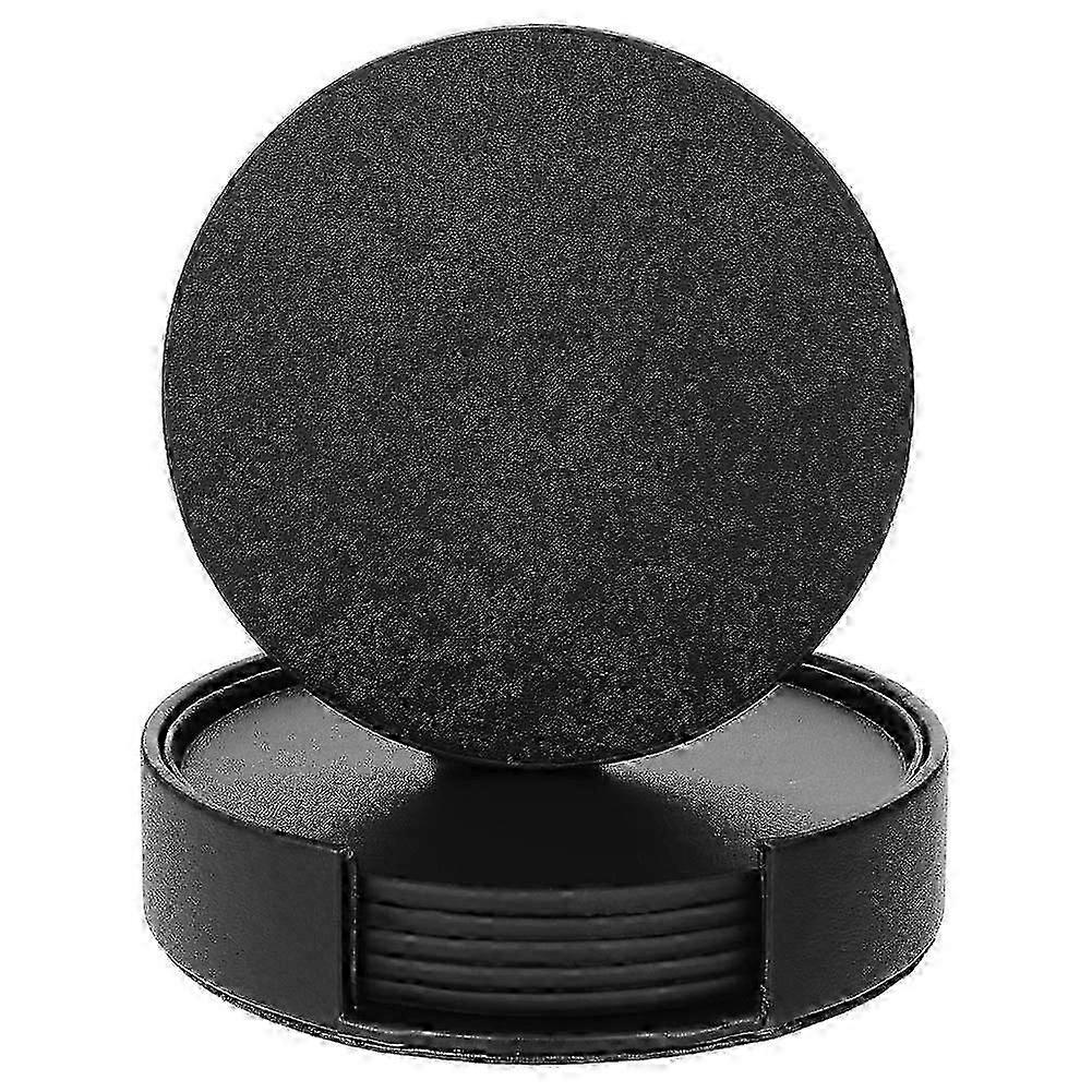 6 Packs PU Leather Coasters, Round Drink Coasters Set for Furniture Protection