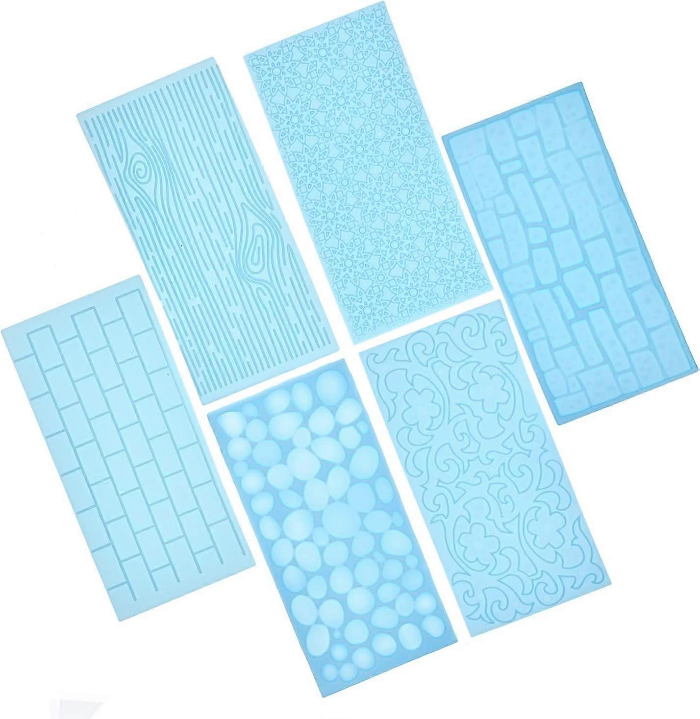 Set of 6 fondant impressions with flower/brick wall/pebble/stone wall texture design for cake toppers.