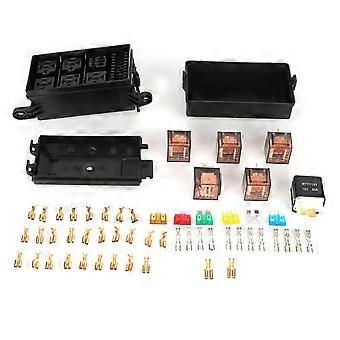 6-Way Car Fuse Box with 1pc 4p 12v and 5pcs 100A Transparent Shell Relays for Ships Car Racing
