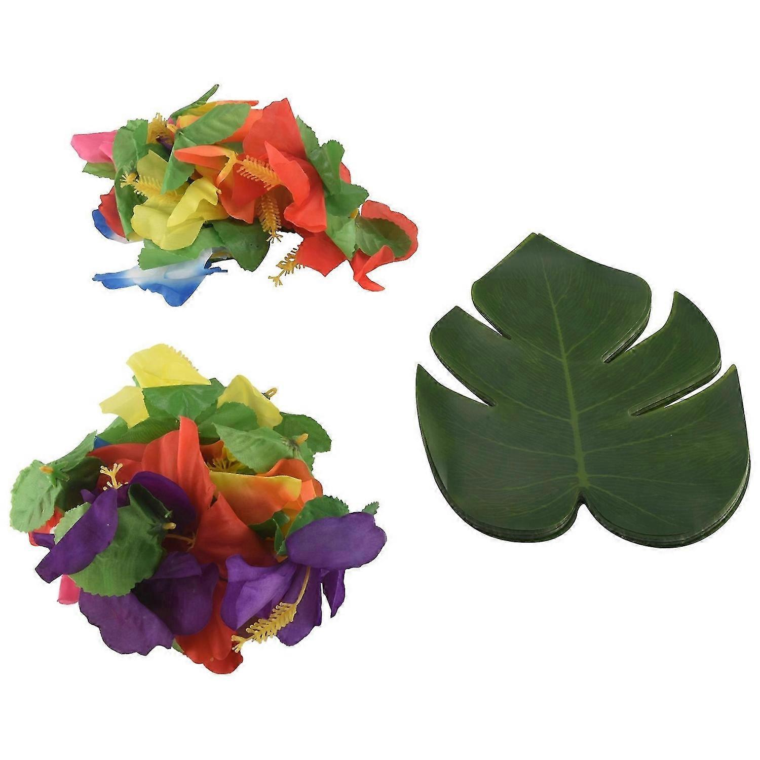 60 Pcs 8 inch Tropical Palm Monstera Leaves and Hibiscus Flowers