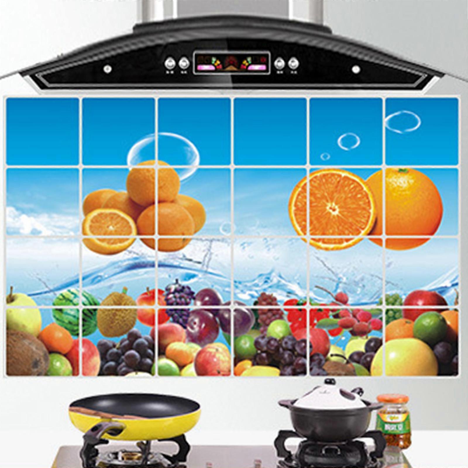 60*90cm Waterproof Anti-oil Stain Aluminum Foil Sticker Kitchen Fruit Wall Paper