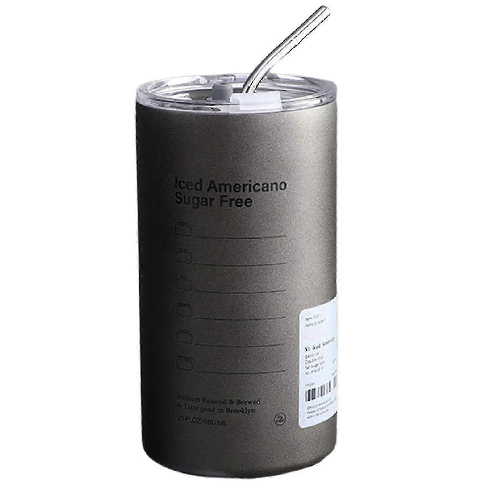 600ml Ins Coffee Cup With Straw Double-layer Rust-proof Simple Fashion Ice American Coffee Mug For Office