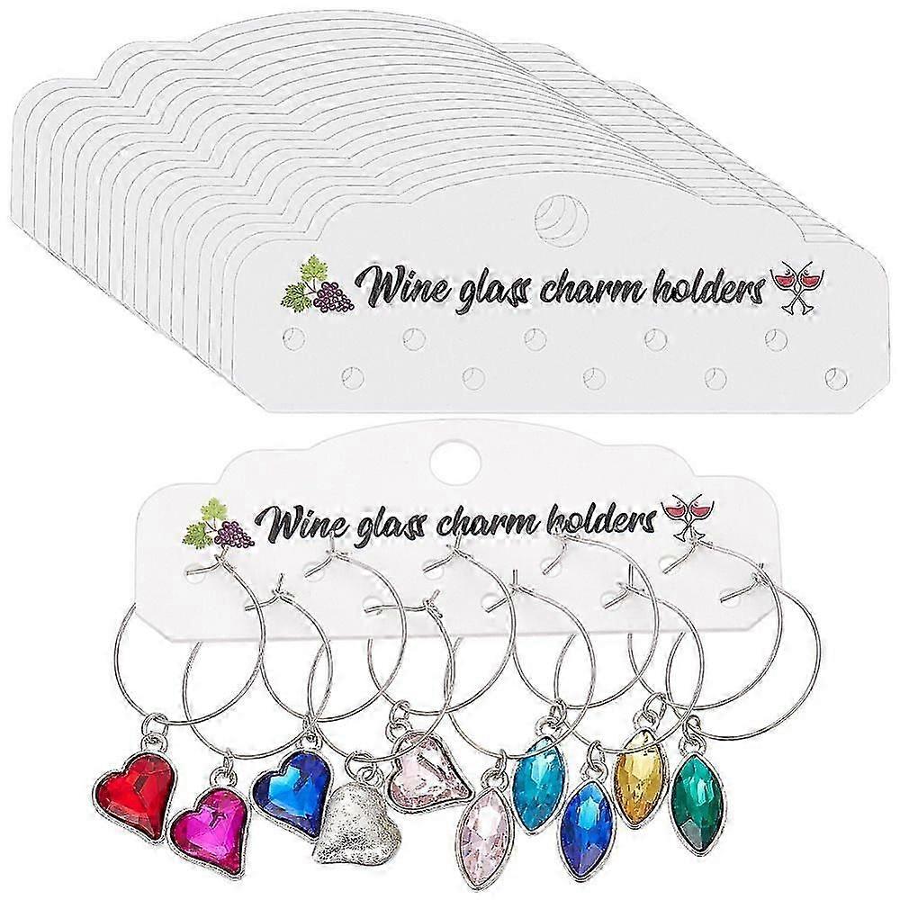 60Pcs Paper Wine Charm Display Cards White 3.8x10x0.1cm Hole: 3~8mm x