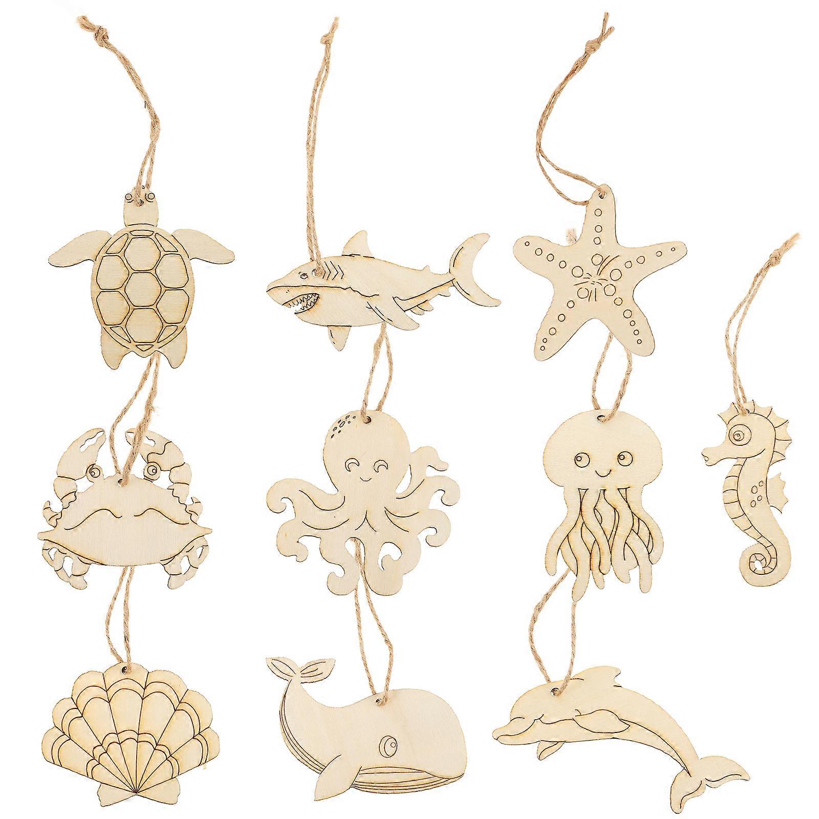 60pcs Scrapbooking DIY Handmade Crafts DIY Wood Slices Ocean Animal Wood Cutouts
