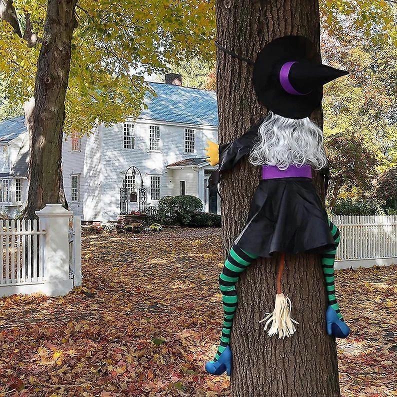 63" Large Crashing Witch into Tree Halloween Decorations Outdoor, Crashed Witch Props Decoration, Flying Witch Hitting Tree Halloween Outside Decor fo