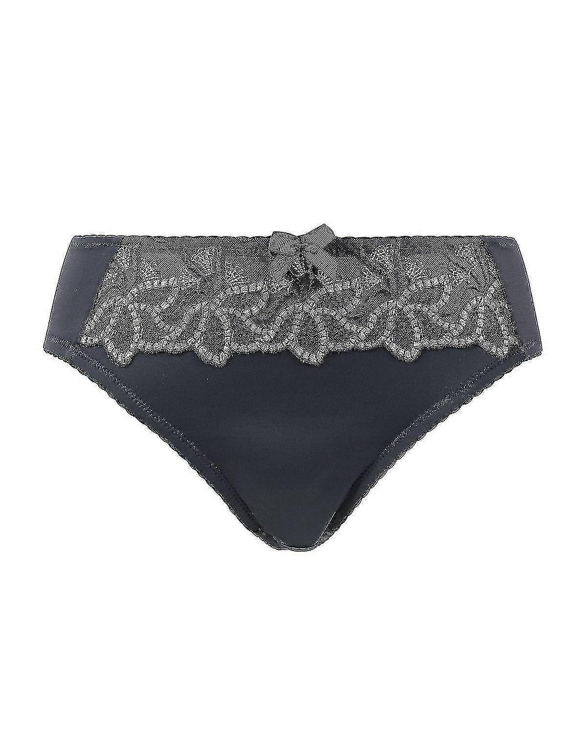 6582-d-010 Women's Black Solid Colour Embroidered Knickers Panty Brief