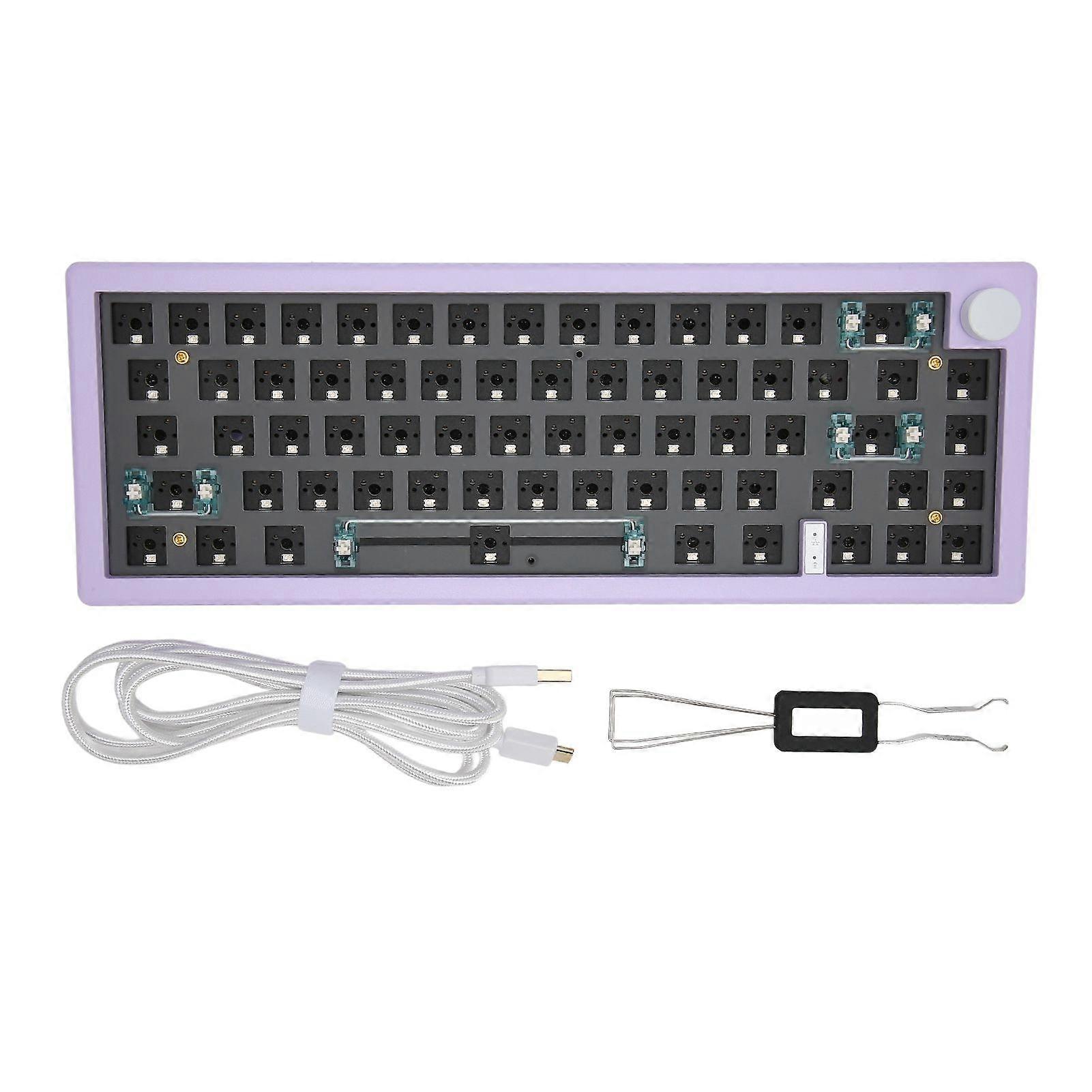 67 Keys DIY Mechanical Keyboard Kit with RGB Knob Wireless 2.4G Bluetooth 5.0 Type C Wired Hot Swappable Barebones Keyboard Purple