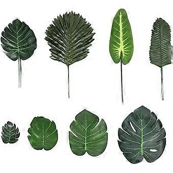 68 Pieces 8 Kinds Tropical Party Decorations Monstera Leaves, Artificial Palm Leaves with Fake Stem