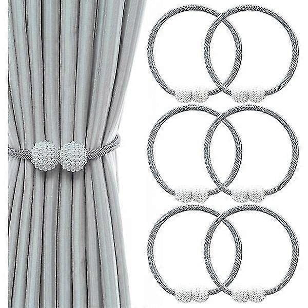 6Pack Magnetic Curtain Tiebacks, Curtain Clip Cord Buckle, Curtain Drape Holder for Home Office Window, Decorative Fabric Holder, Gray