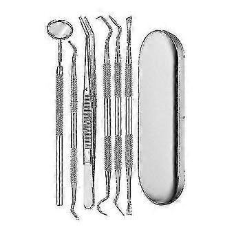 6pc/box Dental Mirror Kit Sickle Tartar Scaler Pick Spatula Silver Box Dental Instruments Dentist