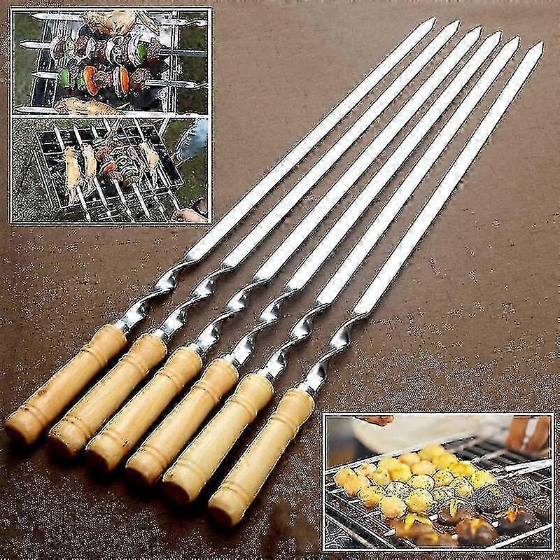 6pcs Stainless Steel Bbq Flat Skewers Outdoors Grill Long Handle Barbecue Stick