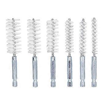 6PCS Bore Brush 4in Rust Proof Twisted Wire Cleaning Brush with 1/4in Hex Shank for Electric Drill Impact Driver White Nylon