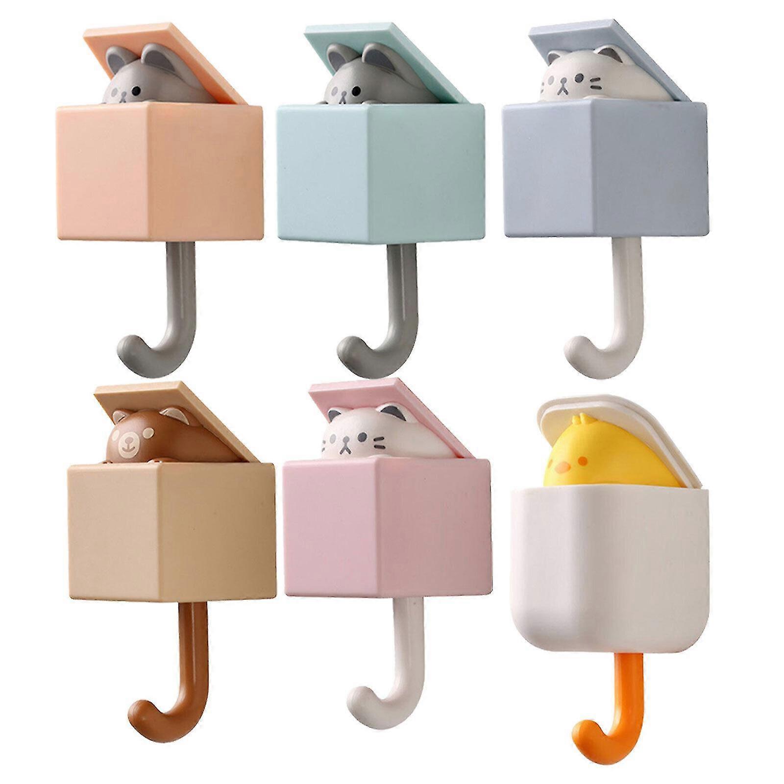 6pcs Creative Cat Hook Cute Seamless Bed Room Door Hangers Hooks Key Wall Dec