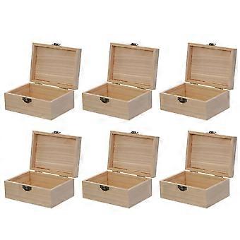 6pcs Unfinished Wood Boxes Wooden Storage Box Wood Craft Box with Locking Clasp