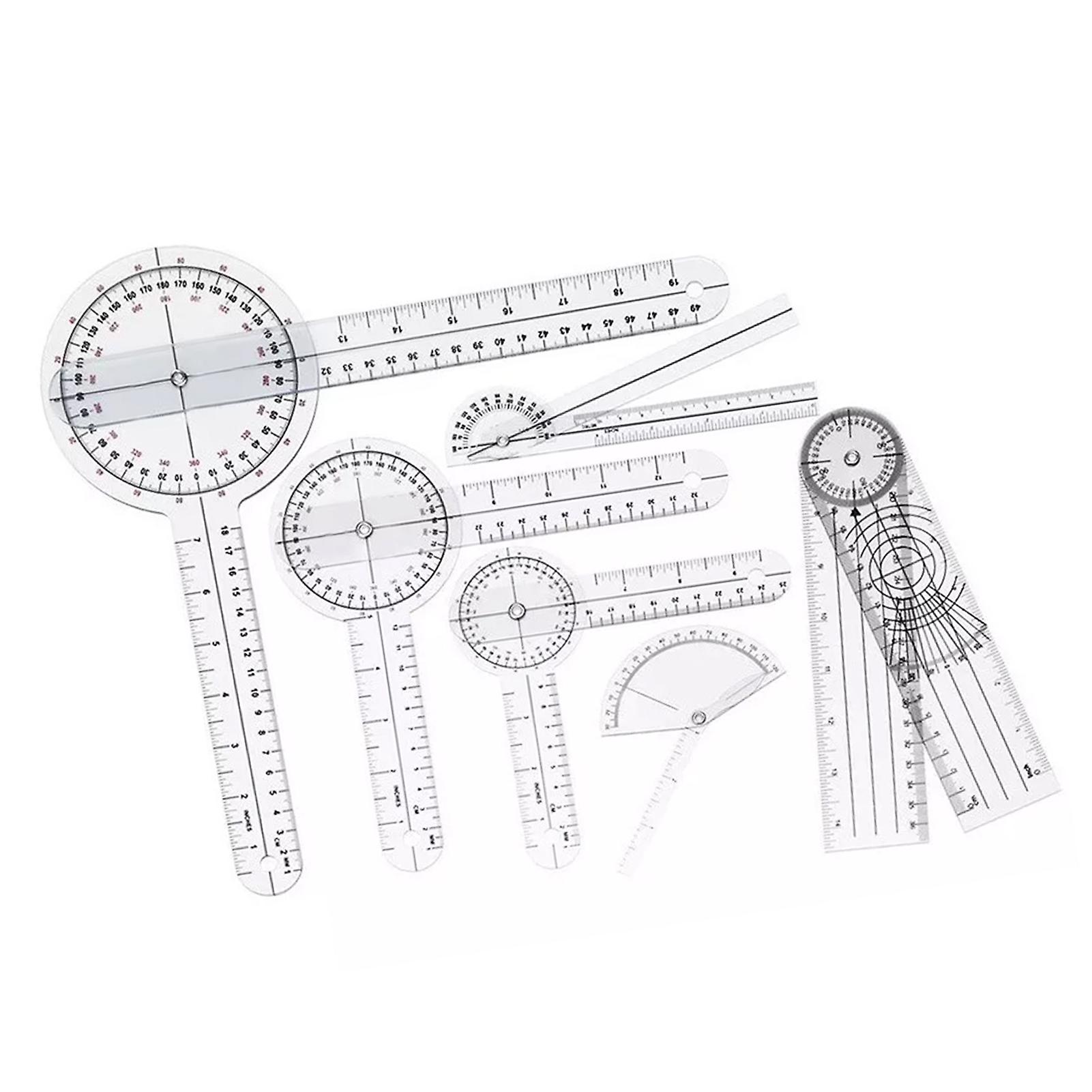 6PCS Medical Goniometer Set PVC Transparent Clear Scale Wear Resistant Angle Ruler for Orthopedics