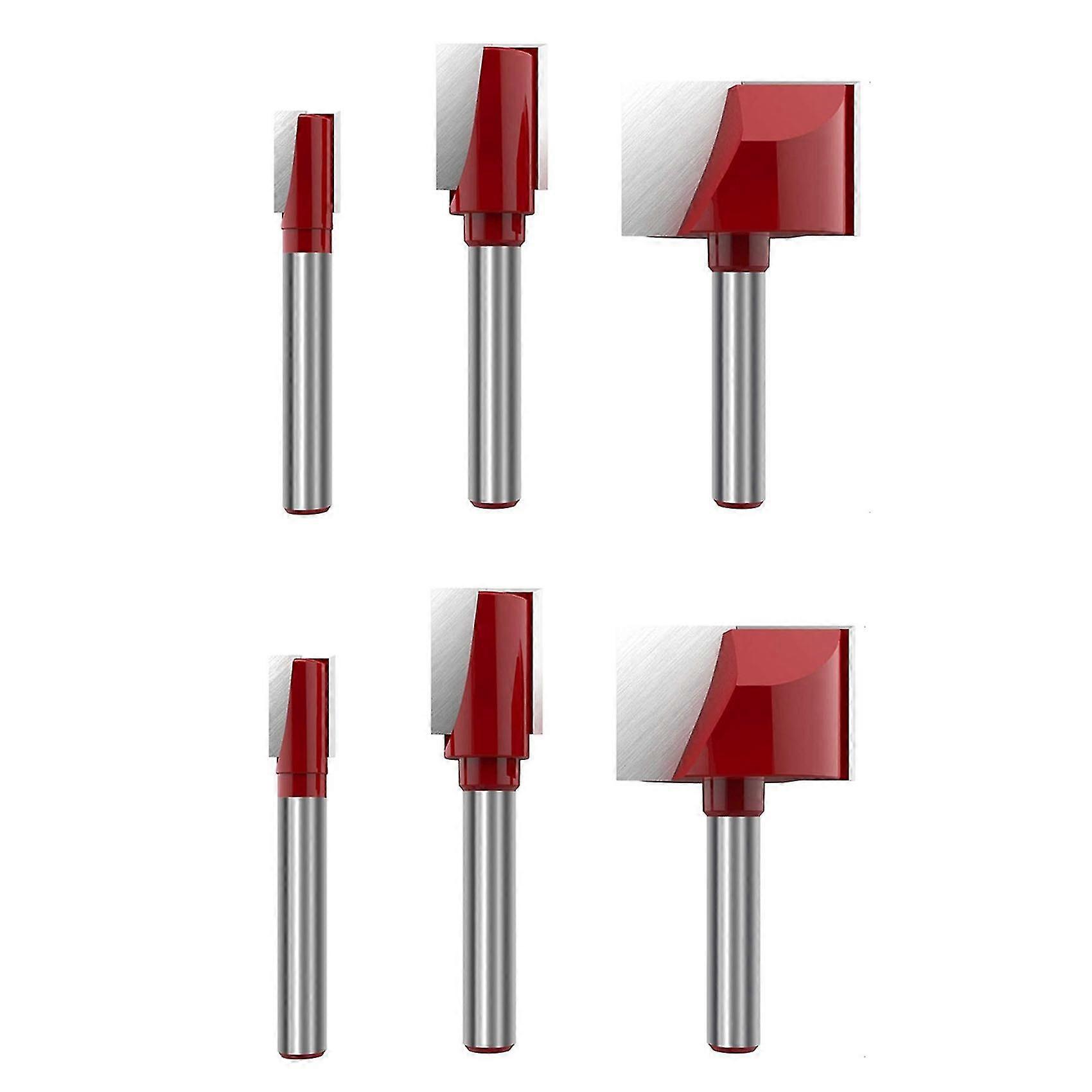 6pcs Cleaning Bottom Router Bit Set 6mm Double Flute Carbide Cutter Flat Spoilboard Surfacing Plani