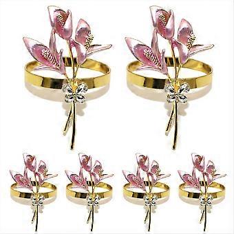 6PCS Gold Lily Napkin Rings Metal Napkin Ring Holder,B