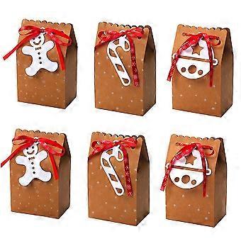 6pcs Brown Paper Candy Cookie Package Christmas Paper Boxes Gifts Packing Boxes Light Brown @BUGU