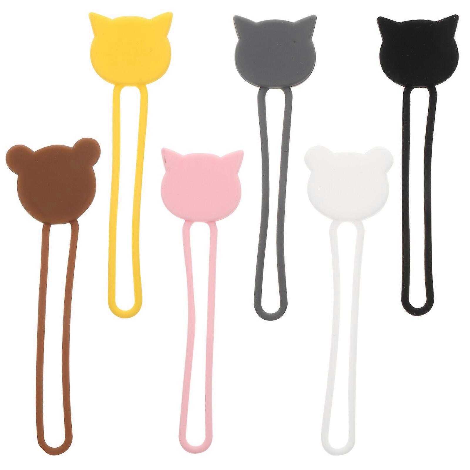 6pcs Cartoon Animal Cable Winders Phone Data Cable Ties Charging Cords Clip
