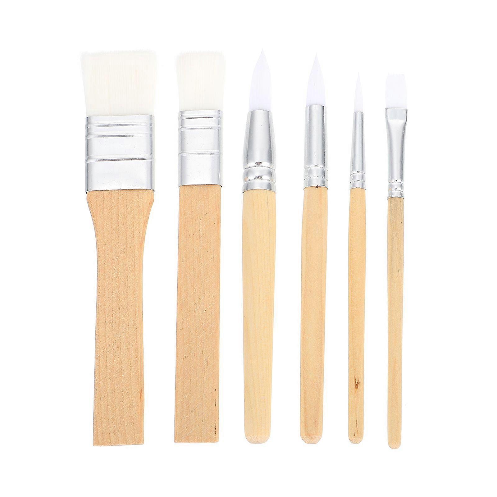 6PCS Short Crude Rod Wool Watercolor Brush Pen Art Supplies Oil Painting Brush Children Diy Drawing Tool