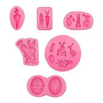 6PCS Rabbit Carrot Egg Silicone Mold Fondant Chocolate Mould Cake-Topper Baking Tools Ornaments Resin Mold Easy to Clean