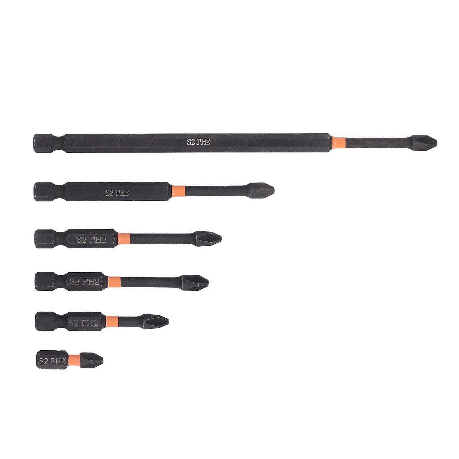 6Pcs Magnetic Screwdriver Bit Set S2 Alloy Steel PH2 Cross 1/4 Hex Shank for Electric Drill