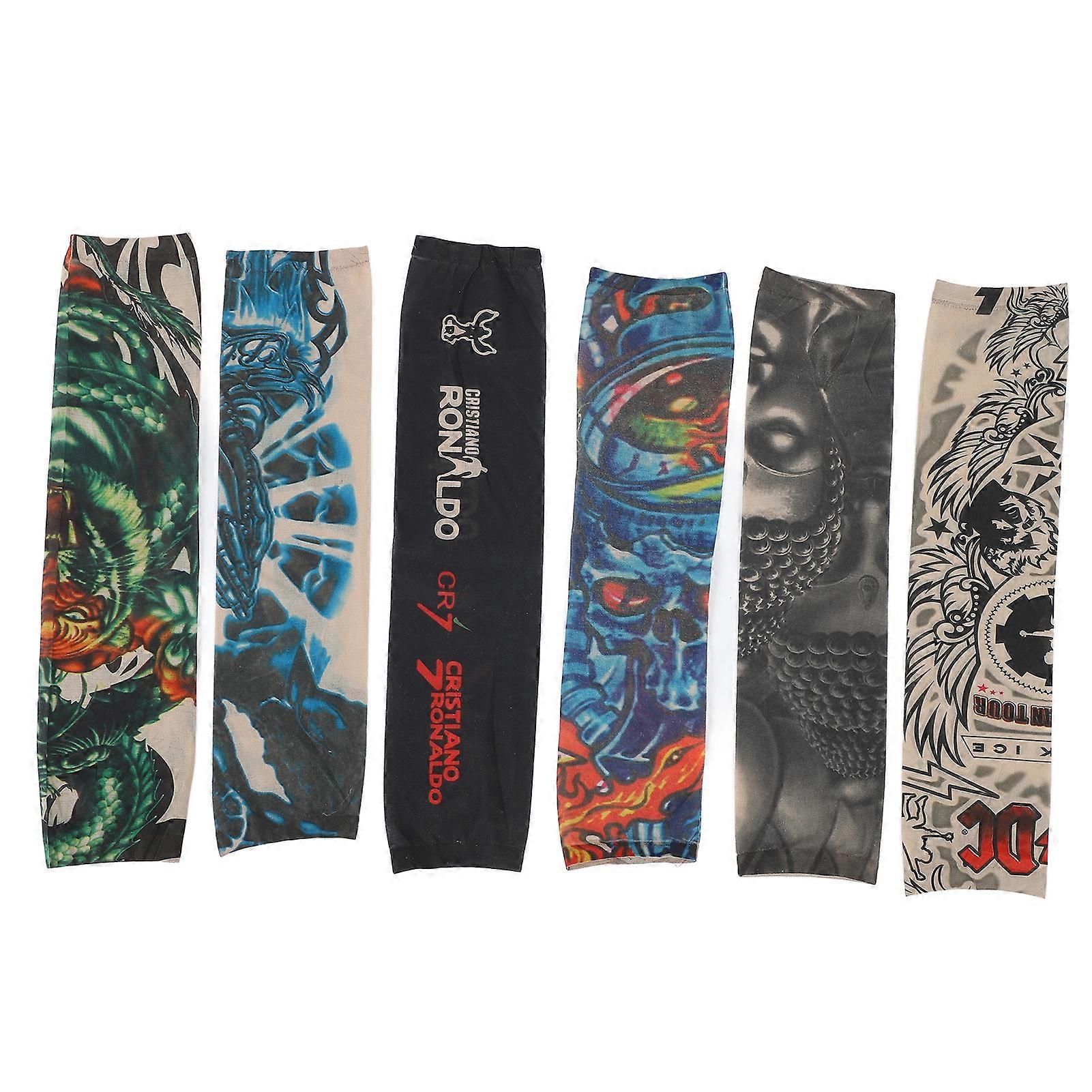 6pcs Tattoo Sleeves Soft High Elasticity Lifelike Tattooed Arm Sleeve for Cycling Hiking