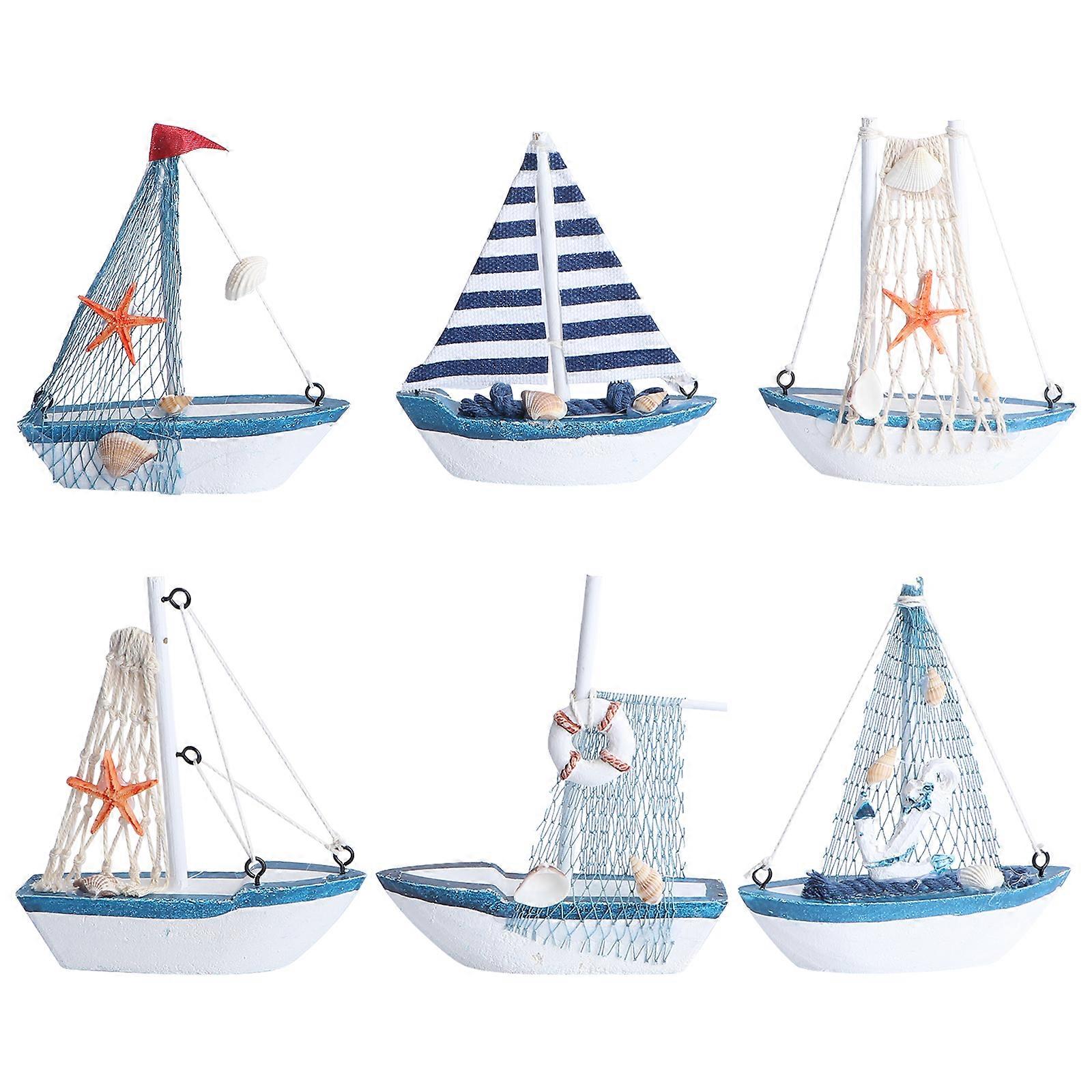 6Pcs Mediterranean Style Sailboat Models Nautical Wooden Sailing Boat Ship Decor Random Style