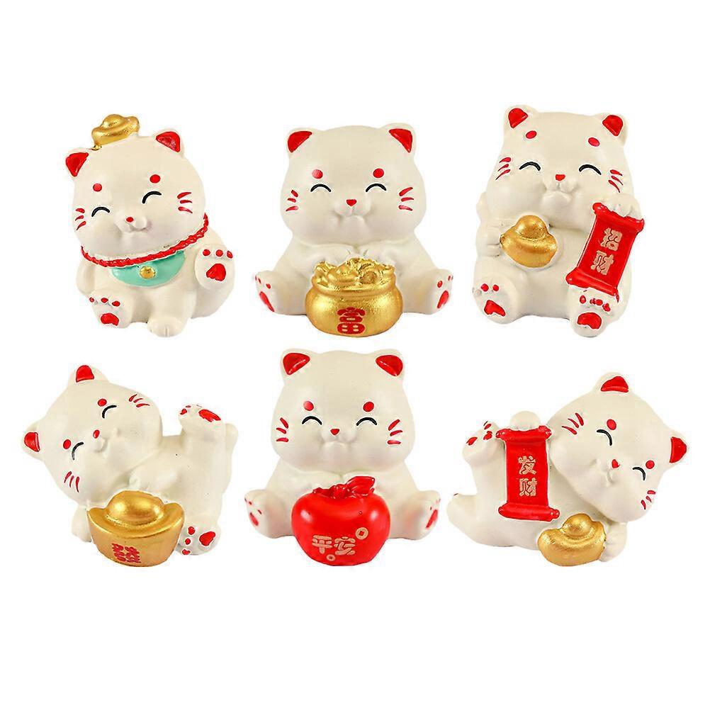 6pcs Miniature Cat Statues Resin Craft Fortune Cat Figures Mini Garden Miniature Animal Statues Decoration