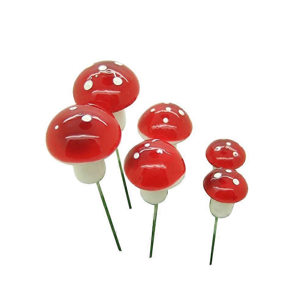 6pcs Imitation Mushroom Iron Wire Mini Red Mushroom for Garden Ornament Flower Pots (20MM, 25MM, 30MM for Each 2pcs)