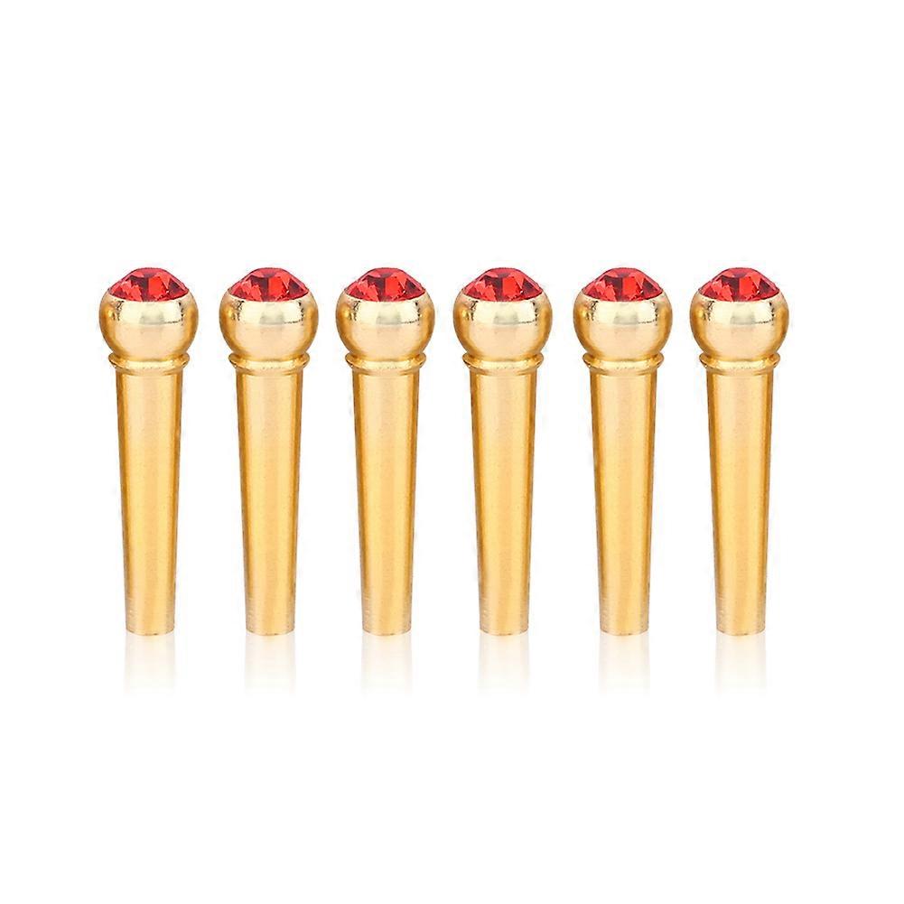 6Pcs Brass Made Guitar Bridge Pins with Crystal Glass Dot Decor Music Instrument Parts Red