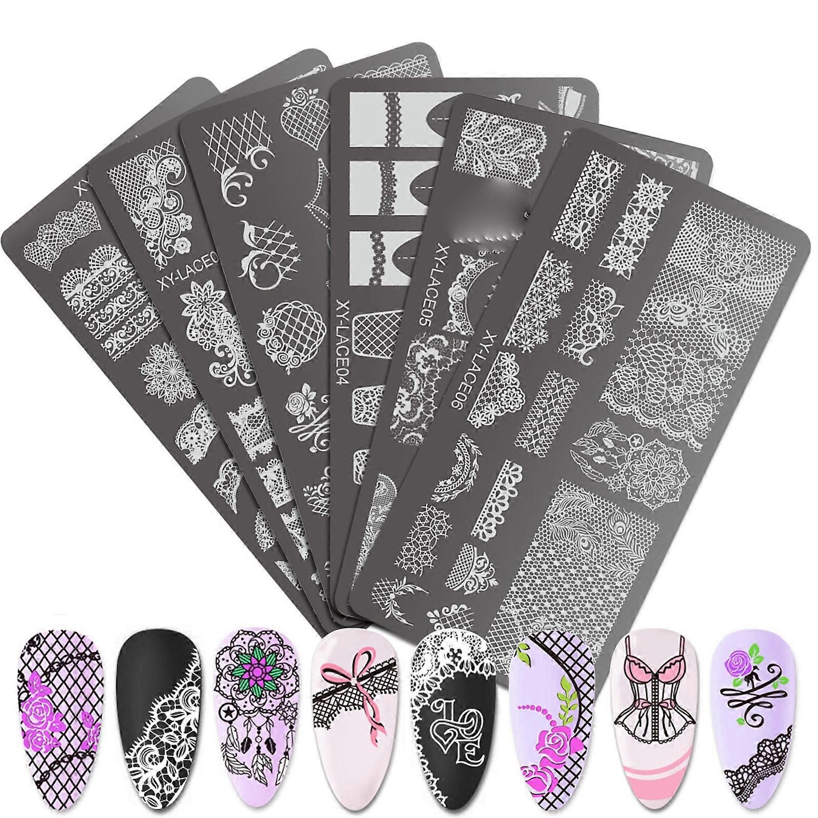 6PCS Nail Stamping Plates Set for Unique and Creative Nail Designs Metal Printing Nail Accesories for Salon or Home Use