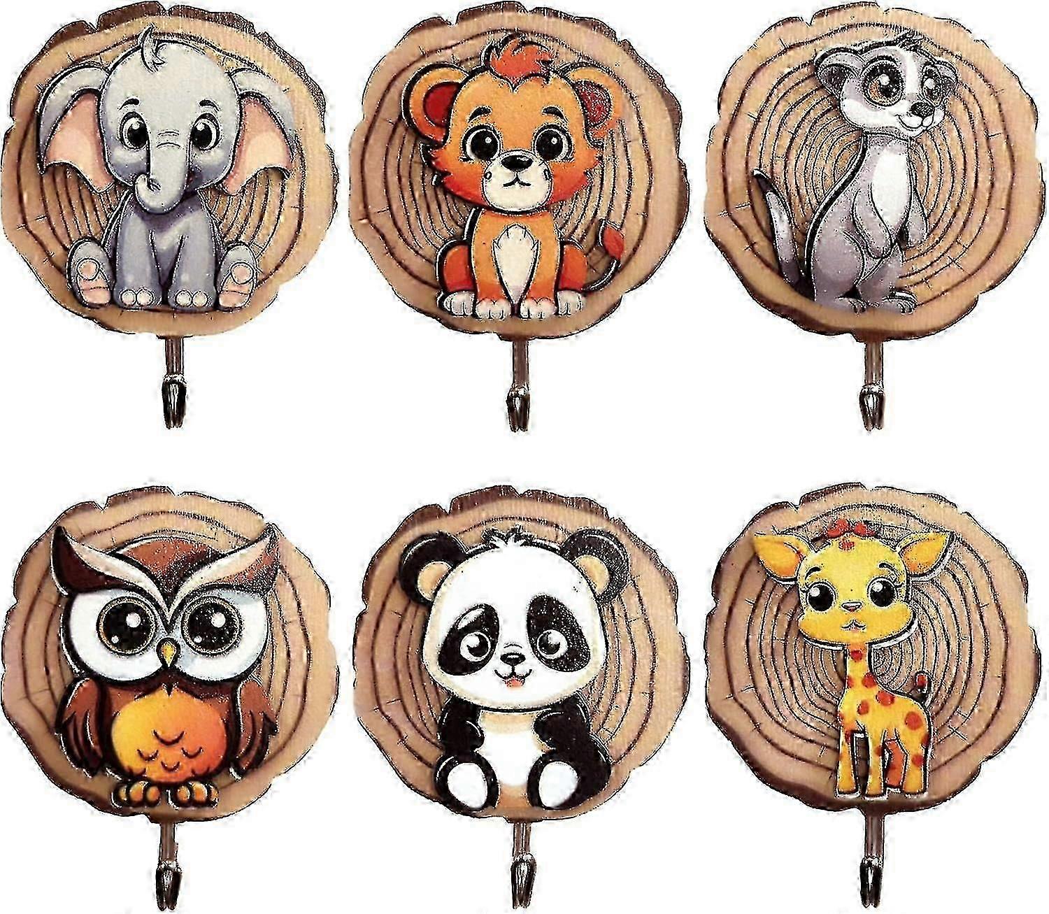6pcs Children's Coat Racks, Wooden Wall Hooks Coat Hooks For Children In Animal Shape, No Drilling Self-adhesive Hooks, Children's Room Dcor