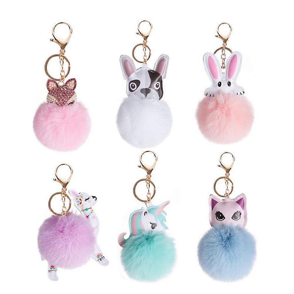 6pcs Lovely animal Keychains Plush Doll Keyrings Decorative Car Keychain Decors