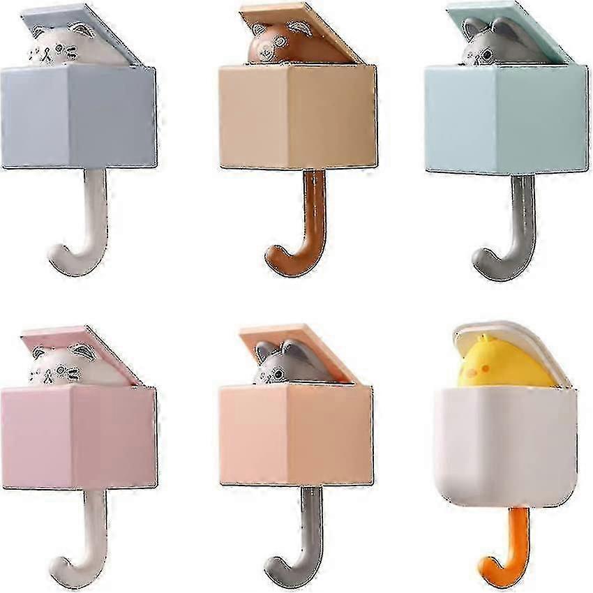 6pcs Cute Cat Hook Seamless Washroom Bedroom Door Hanger Key Umbrella Towel Cap Hook