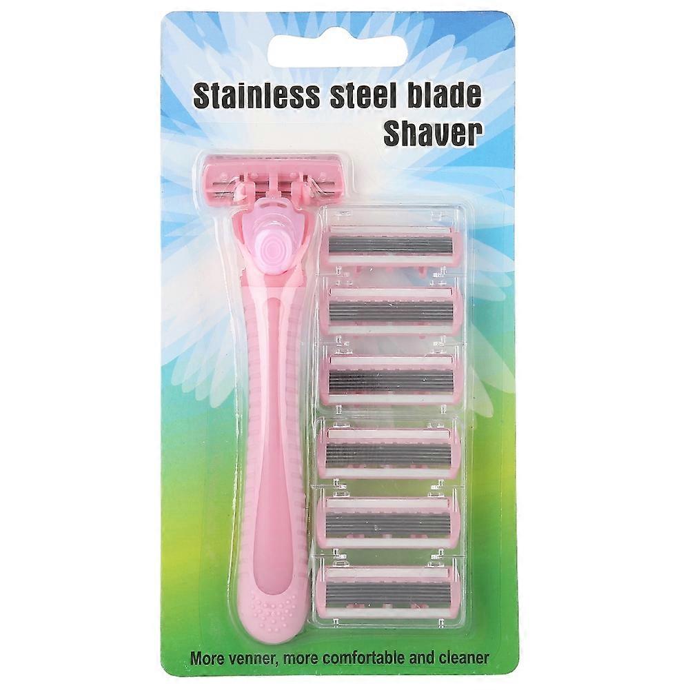 6Pcs Six Layer Female Razor Blades Women Body Hair Removal Manual Epilator with 1 Handle