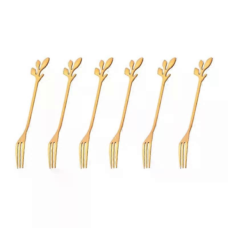6Pcs Creative Stainless Steel Gold Tableware Leaf Shape Flatware Fruit Fork Dinnerware Appetizer Snack Dessert Fork Kitchen