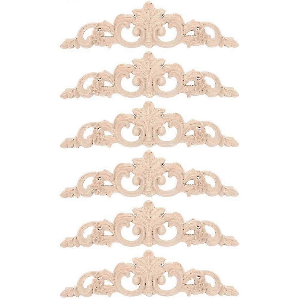 6Pcs Onlay Wood Mouldings Wood Applique Wood Decal Carved Unpainted Long Flower Rubber Wood Corner