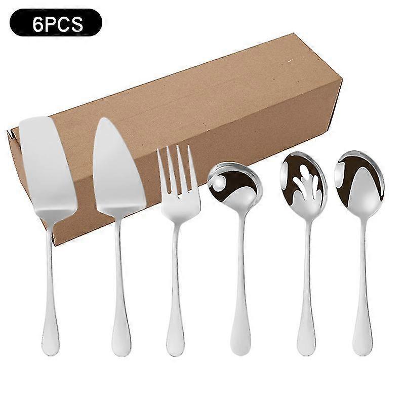 6pcs Cutlery Set Stainless Steel Tableware Cake Spatula Service Soup Spoon Colander Spoon Salad Fork Spoon Dinnerware