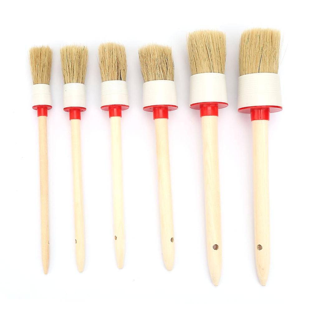 6pcs Wooden Handle Car Detailing Brush Set Round Oil Painting Wax Brushes